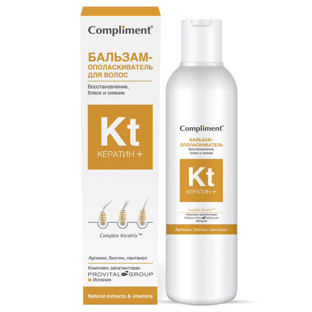 Бальзам-ополаскиватель 200мл КЕРАТИН Восстан.Блеск.Сияние Комплимент 7408